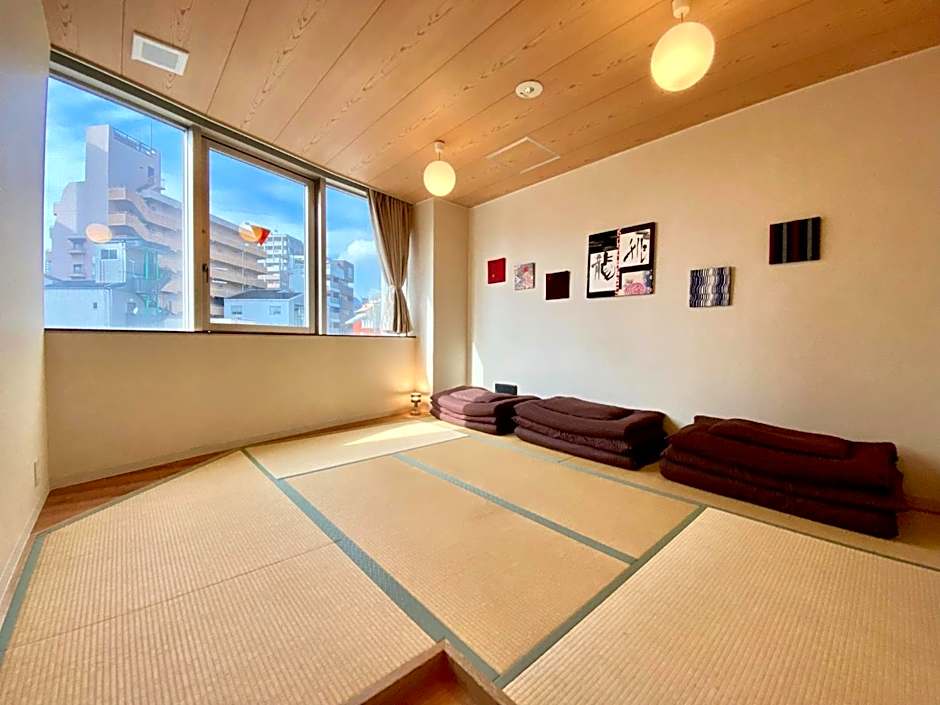 The triple room offers air conditioning, a washing machine, as well as a shared bathroom featuring a shower and a hairdryer. Guests can make meals in the fully equipped kitchenette that features kitchenware, a microwave and a toaster. The triple room provides tatami, a tea and coffee maker, a dining area, tumble dryer, as well as a TV. The unit offers 3 futons.